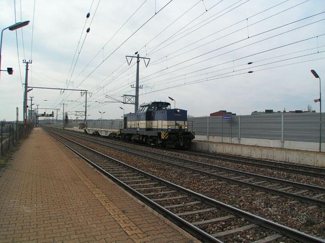 Der frühere Bahnhof Dallgow (b. Berlin), jetzt wieder Dallgow-Döberitz im Mai 1993. Inzwischen ist alles um- und ausgebaut zur Hochgeschwindigkeitsstrecke (HGV) Hannover - Berlin. Ein ICE wird mit einer 219 von Berlin nach Wustermark Rbf überführt, weil es noch keine Oberleitung gibt. Die Überführung diente allein dem Graffiti-Schutz!