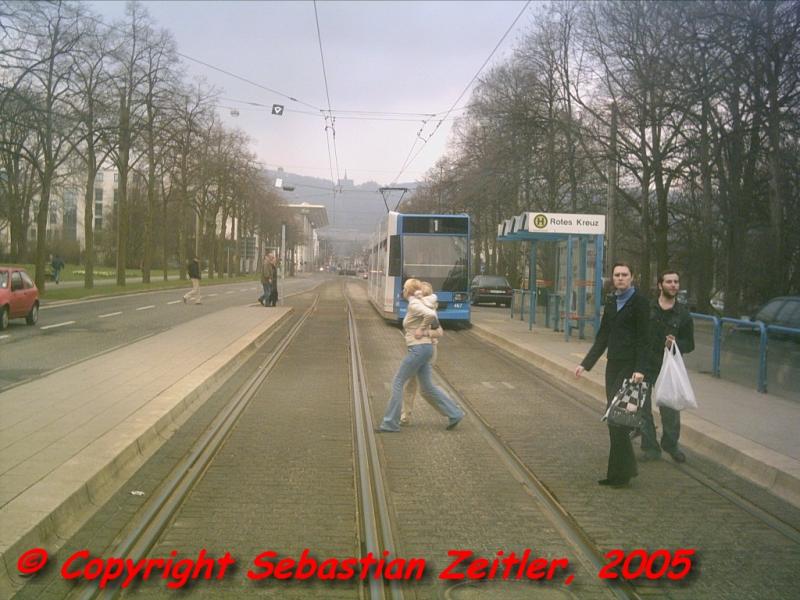Die Linie 6 am Königsplatz auf ihrem Weg nach Wolfsanger am Nachmittag des 28. März 2005.