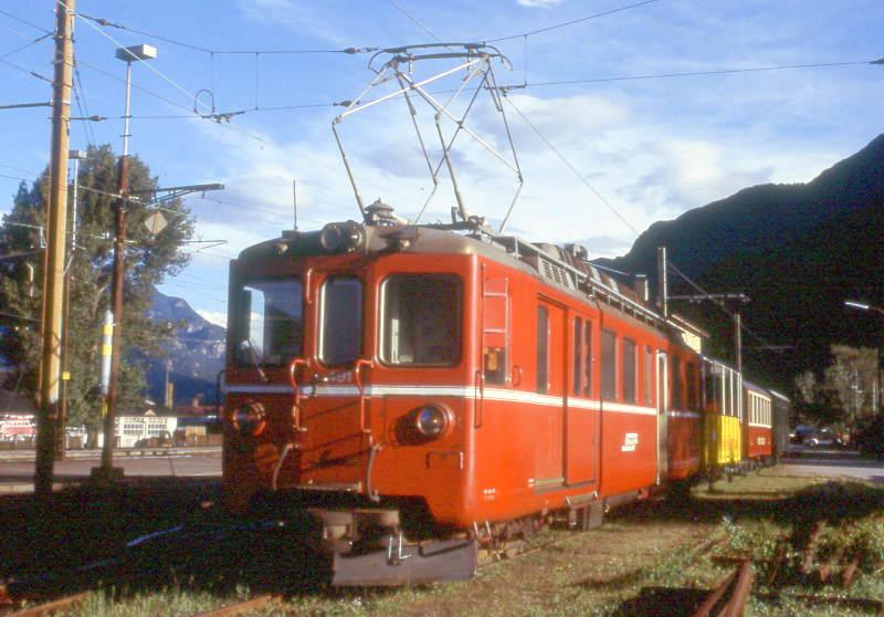 FM Dienstzug für GRAUBÜNDEN TOURS 3201 Grono Depot - Castione-Arbedo vom 29.08.1997 in Castione-Arbedo mit BDe 4/4 491 - B² 2094 - B 21 - B² 2060. Hinweis: Ankunft kurz nach Sonnenaufgang!