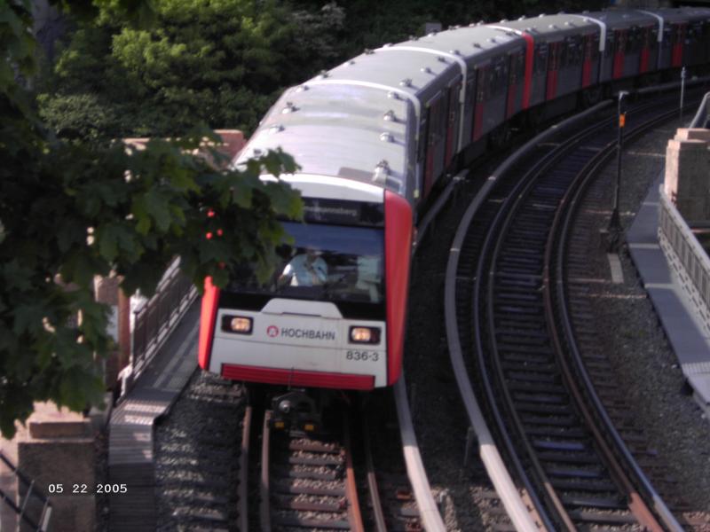 DT3 Es sind die Türen offen die normalerweise nicht offen sind dort ist auch kein Bahnsteig.Aufgenommen in Barmbek