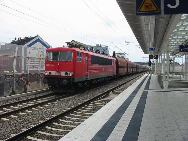 155-256 zieht ihren Güterzug durch Ludwigshafen Mitte.
