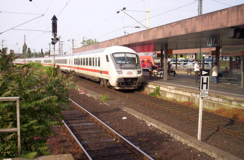 Ein IC fährt bei Abendstimmung in Düsseldorf HBF ein. 29.05.2005
