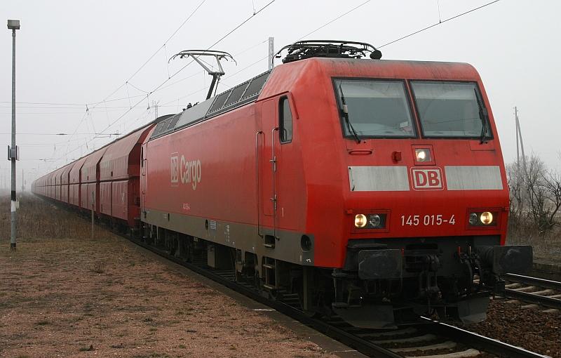Im dichten Nebel tauchte 145 015-4 am 24.03.05 in Angersdorf auf.