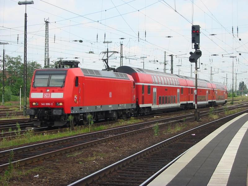 146-006-2 am 31.05.2005 mit RB nach Mannheim bei der Einfahrt von Worms Hbf.