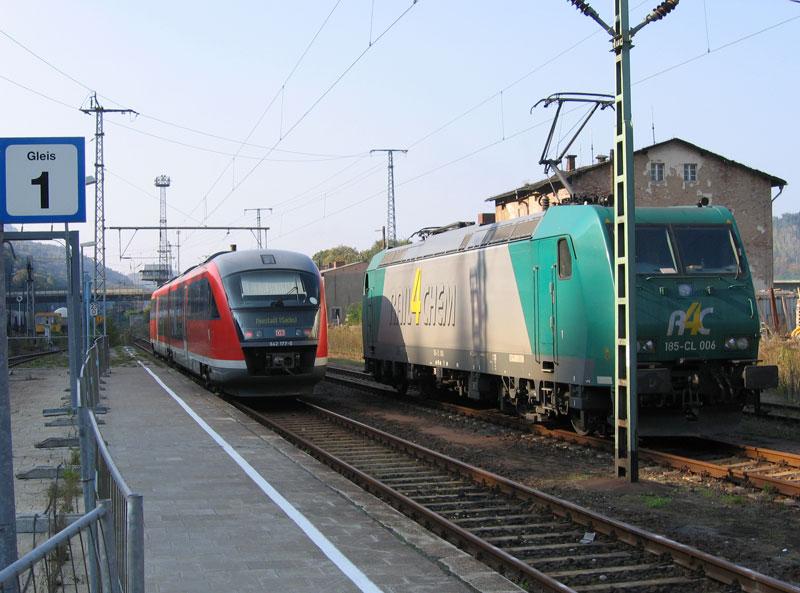 Zwei unterschiedliche Möglichkeiten eines modernen Bahnbetriebs auf Nebenstrecken. Einmal die Mehrsystem-Stadtbahn; sie kann auch als Straßenbahn weiterfahren in die Städte, dann die kostengünstigere Variante mit leichten Dieseltriebwagen, die Elektrifizierung ist dann nicht nötig. Die Enztalbahn Pforzheim - Bad Wildbad wurde am 14.12.2002 auf Stadtbahnbetrieb umgestellt, während seit 12.12.2004 die Nagoldtalbahn Pforzheim - Horb - Tübingen mit modernen RegioShuttles betrieben wird.