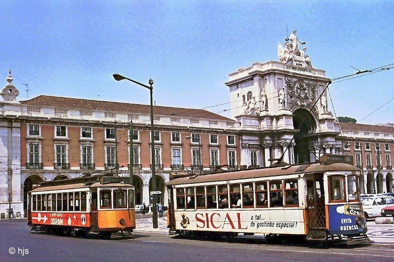 Tw 169 in der Rua da Restauração (3. Mai 1988). Im Hintergrund der Douro und die Arrábida-Brücke.