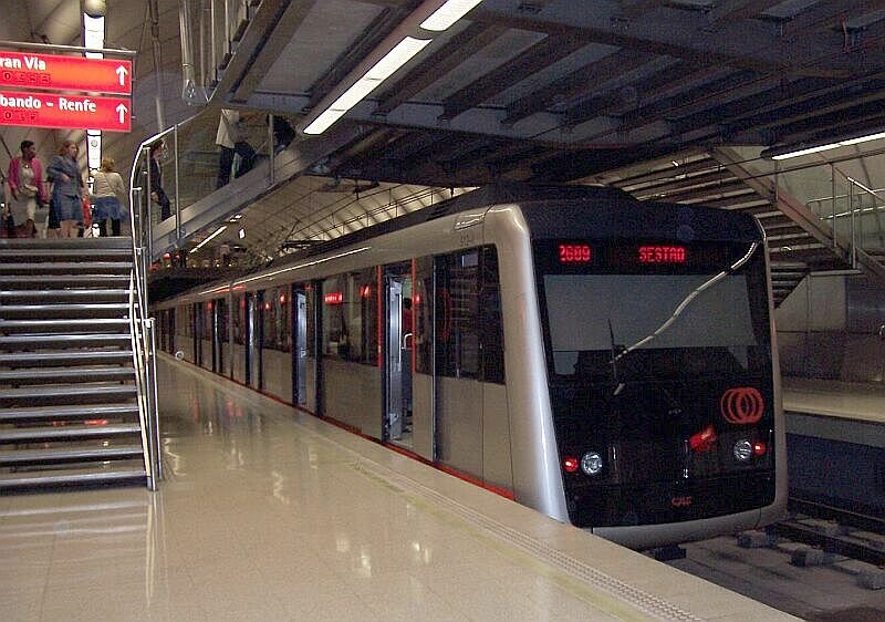 BR UT 500 der Linie 2 nach Sestao in der Metro-Station Abando, Umsteige-Station zum RENFE-Bahnhof Abando und zum FEVE-Bahnhof Concordia, aufgenommen im September 2005.