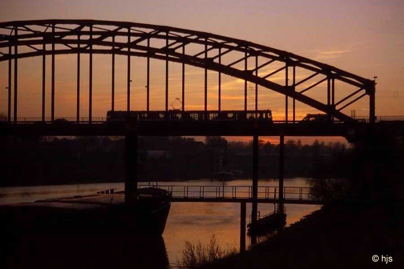 GT10NC der Duisburger Verkehrsgesellschaft überquert die Ruhr auf der Karl-Lehr-Brücke (23. November 2005).