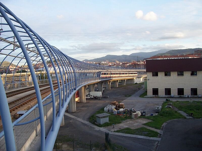 Station Bolueta der Linien 1 und 2, Umsteige-Station zur EuskoTren nach Bermeo und San Sebastian, aufgenommen September 2005. Auf der einen Seite raus aus dem Untergrund, über eine Flußbrücke und ....