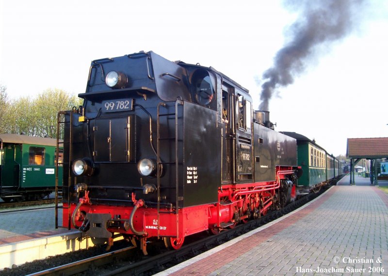 53 Mh der RÜKB (ehem. 99 4633 ) vor dem Lokschuppen in Putbus. Die Lok ist die zweit älteste noch betriebsfähige Dampflok der Kleinbahn. Sie wurde von Vulcan in Stettin 1925 als Heißdampflok gebaut. Mai 2006