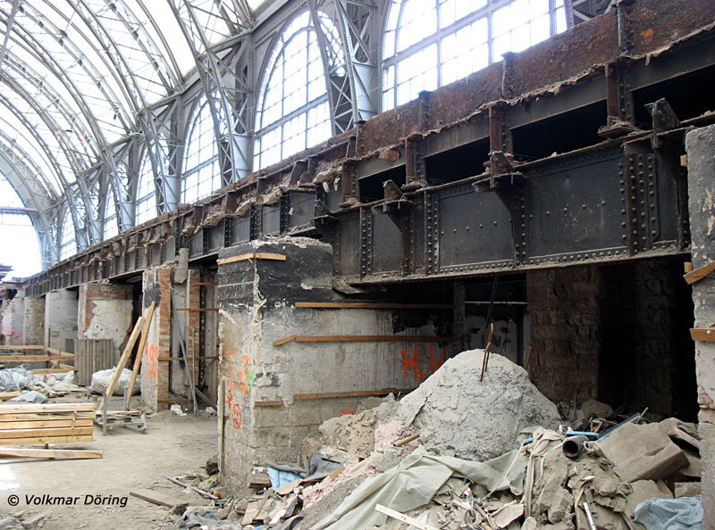Rekonstruktion Dresden Hauptbahnhof; nach Erneuerung der Gleistragwerke in der Südhalle werden hier wieder die Hochgleise 3, 4 und 5 verlaufen. - 19.08.2006