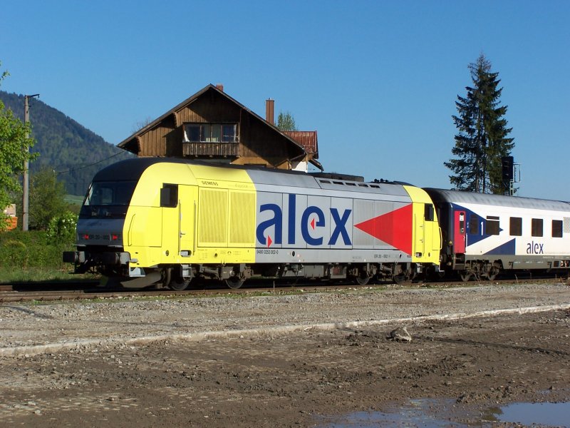 ER 20 006 zieht einen Alex in Richtung Kempten. Sonthofen im April 2005.