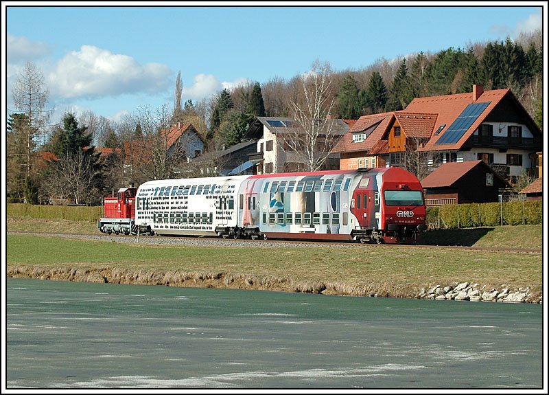 R 8564 von Wies-Eibiswald nach Graz, am 29.3.2006 kurz vor Deutschlandsberg bei den Teichen in Kresbach.