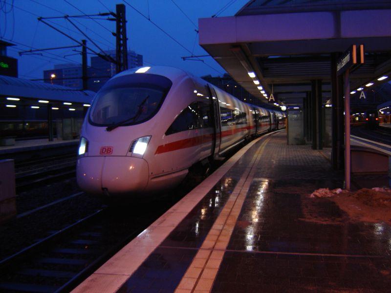 Ein ICE T2 verlässt am späten Nachmittag den Bahnhof Berlin Ost in Richtung Hamburg Altona.