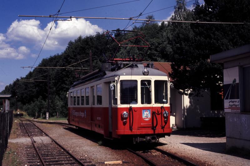 Unterwegs auf der schmalspurigen Strecke (1000mm) zwischen Vorchdorf und Seebahnhof Gmunden. Foto: 19.3.1996