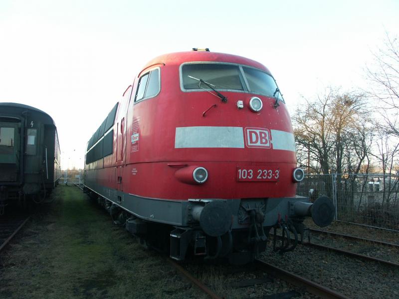 103 233 in Verkehrsrot mit der Roco Werbelackierung auf dem Gelände des DB Museums Koblenz.