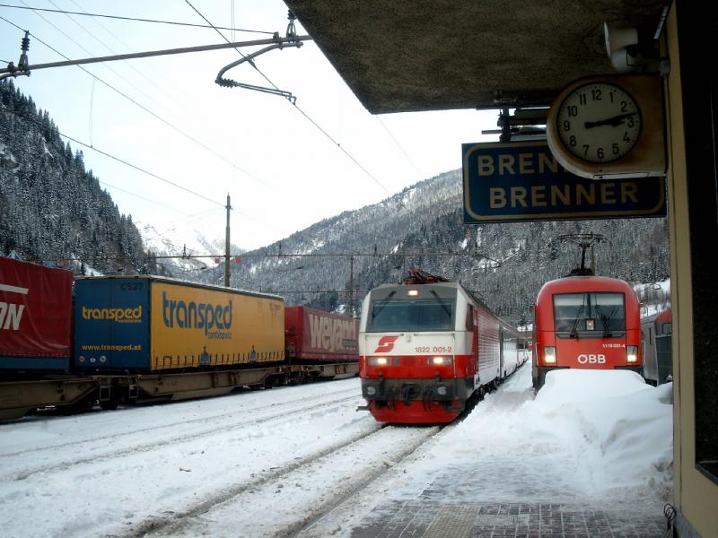 1822 001-2 am Nachmittag des 5.1.2006 bei der Einfahrt in den Bahnhof Brenner