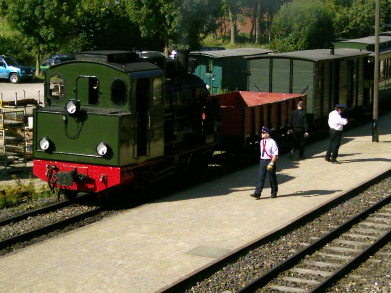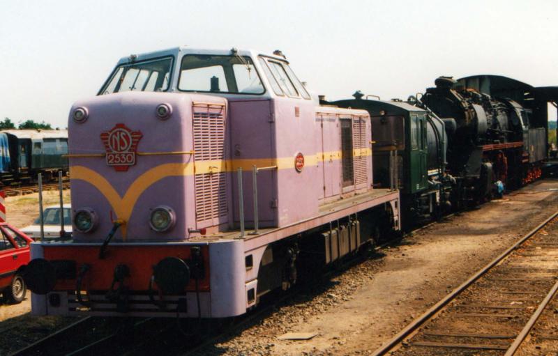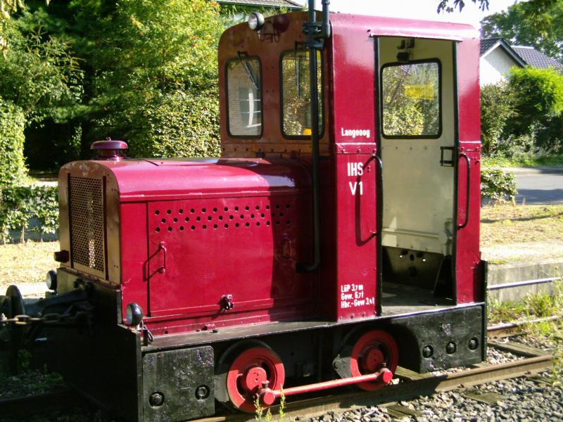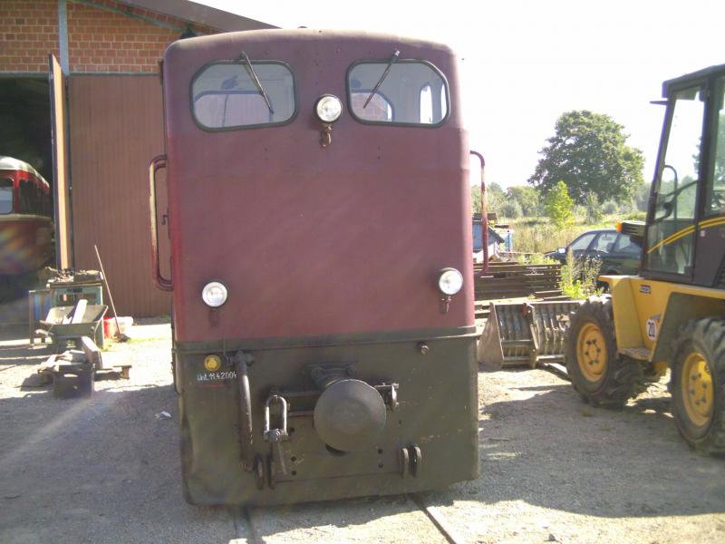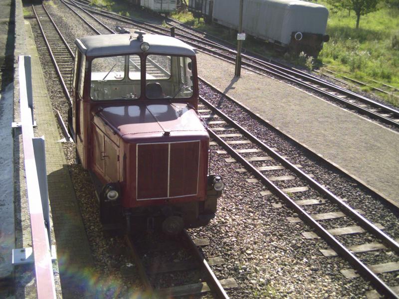 Diesellok "Helmut" im Bahnhof Schierwaldenrath vor der Fahrzeughalle