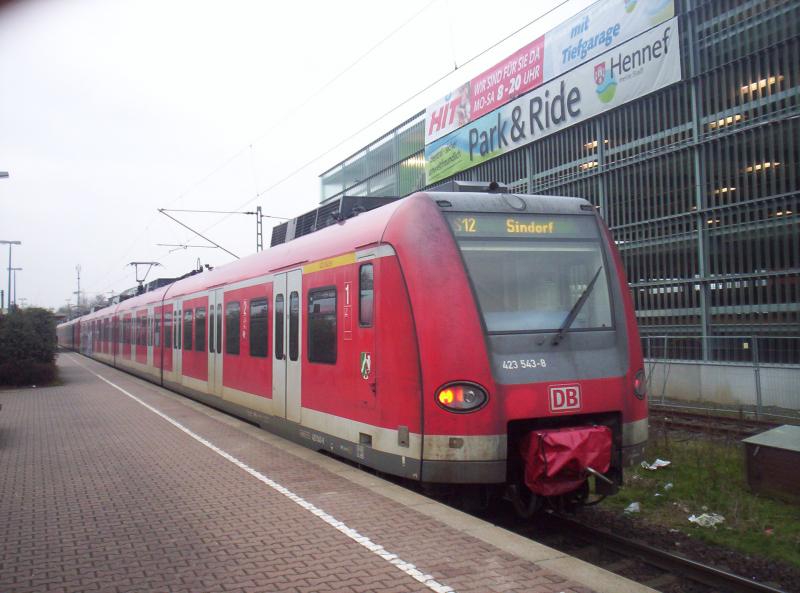 423 543(243) nach der Ankunft aus Düren (S12) in Hennef(Sieg). Bei der Einfahrt in Hennef(Sieg) hat der Triebfahrzeugführer schon das FIS auf "S12 Sindorf" geändert. 07.01.2006