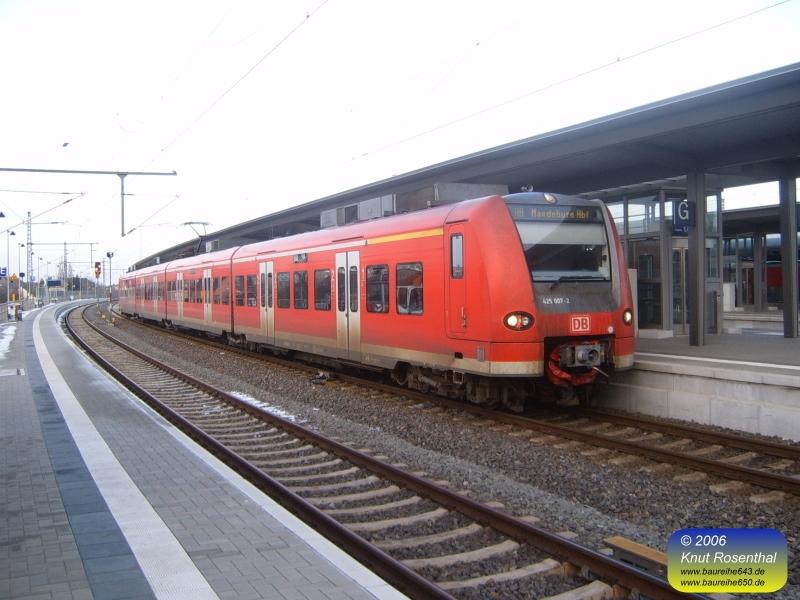 425 007 steht als RB 36819 am 11.01.2006 im Bahnhof Wittenberge, um in wenigen Minuten nach Magdeburg zu fahren.