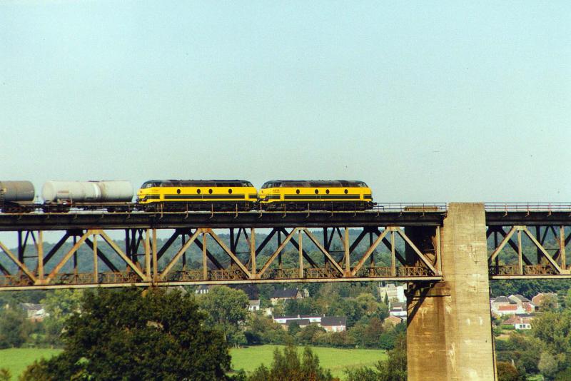 5527 und 5525 mit einem Tankzug auf dem Geultalviadukt bei Moresnet Juni 2003