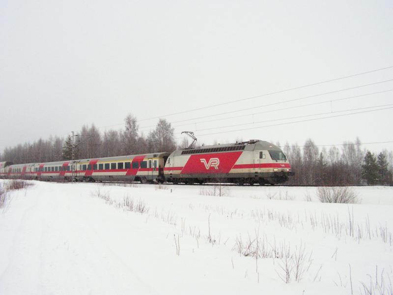 Am 8.1.06 rollt gegen 11 Uhr einer der typischen IC durch das kleine finnische Dorf Lamminkoski bei Parkano.