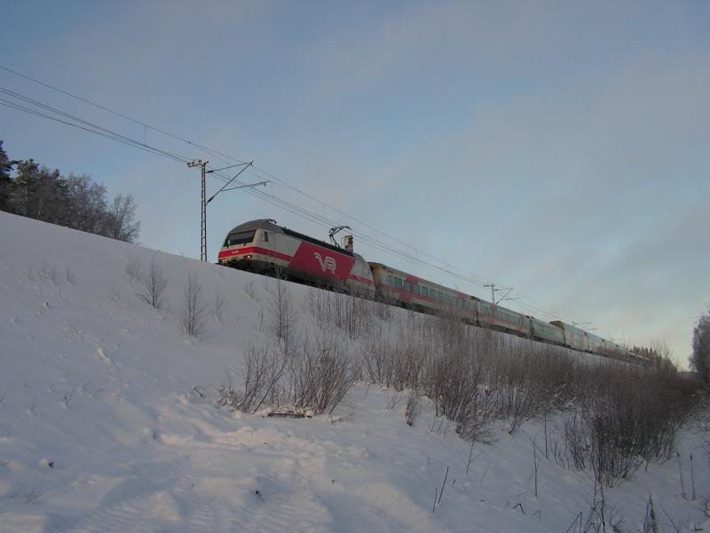 Dm3 1227/1243/1228 begnet am 02.11.2005 mit einem Leerzug von Narvik kommend in Tornesträsk einen Vollzug.