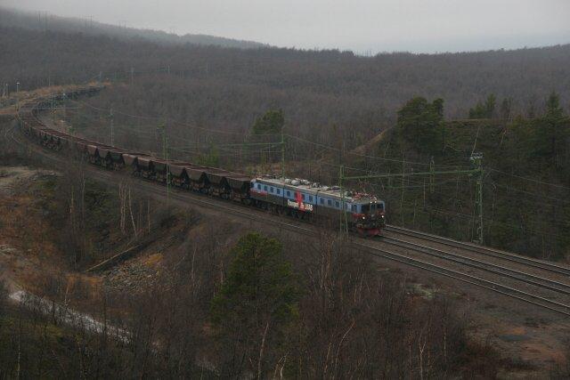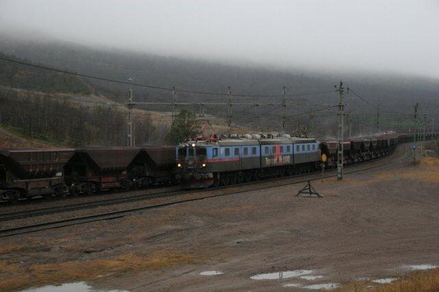 IORE 103/104 verlässt am 03.11.2005 mit einem Erzzug Kiruna und fährt zur Erzaufbereitung in Svappavaara.