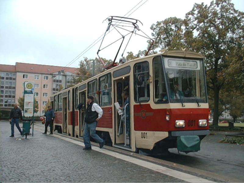 Prototyp des Tatra Gelenkzuges KT4D am Platz der Einheit 26.09.04 zum Stadteilfest Waldstadt und 70 Jahre Linie Richtung Rehbrücke