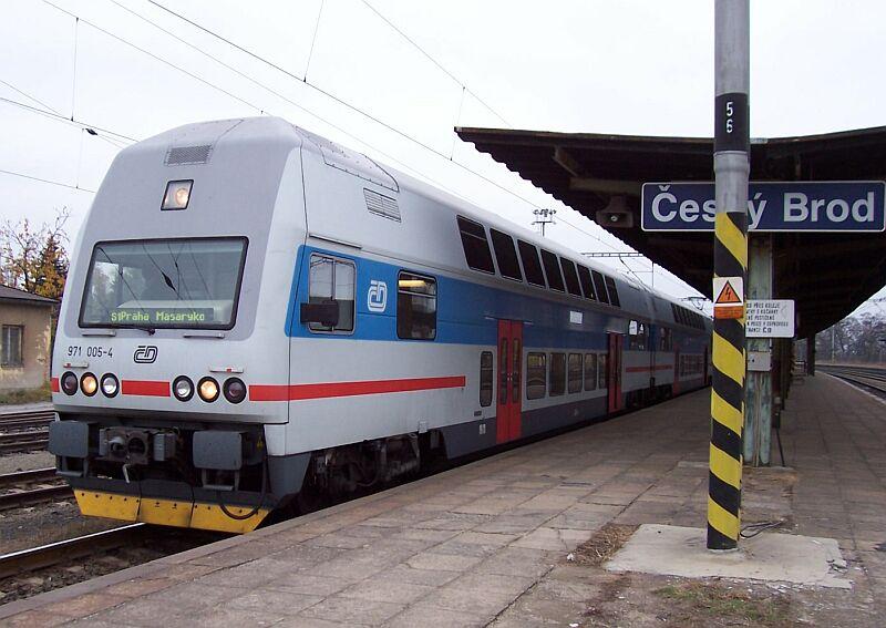 Steuerwagen 971 005-4 (Triebzug BR 471), oben 8 Fenster, unten 5 große Fenster, am 15.11.2005 in Cesky Brod.
