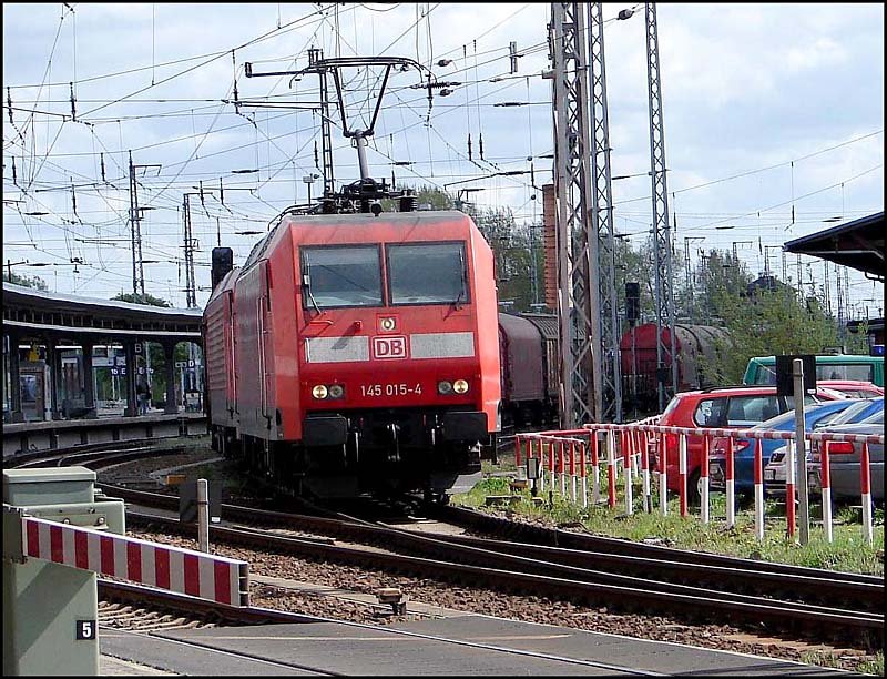 BR 145 015-4 auf dem Weg zum Rostocker Seehafen. aufgenommen am 1.7.06 kurz vor Rostock