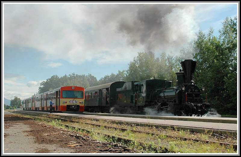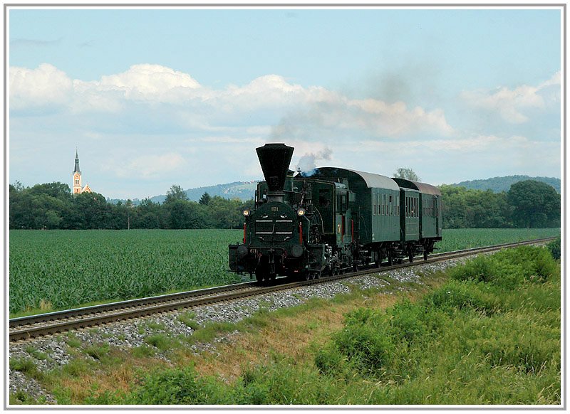 Den zweiten Sonderzug, den 671 am 30.6.2006 bespannte führte sie nach Deutschlandsberg. Am Foto ist sie mit ihrem SPz 8531 kurz nach Groß St. Florian zu sehen.