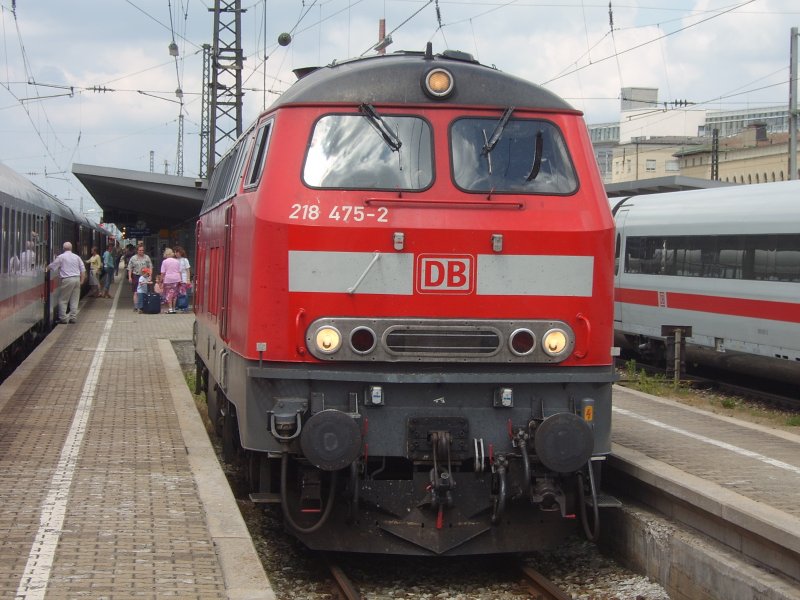 Am 01.07 steht 218 475-2 in Augsburg HBF auf dem Abstellgleis 2 Süd. Sie wird jetzt den so eben eingelaufenen IC 2085 / Nebelhorn nach Oberstorf übernehmen. Besonderes Augenmerk hat der Schneepflug verdient.