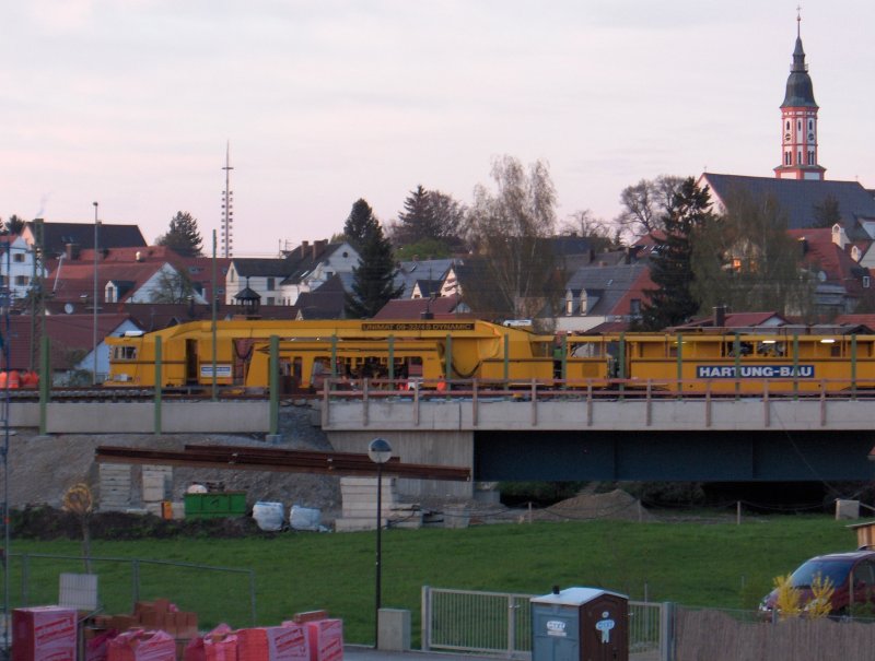 Der Bahnausbau Augsburg - München 4.5.2006 bei Mering mit dem Bauzug der Hartung-Bau Gesellschaft.