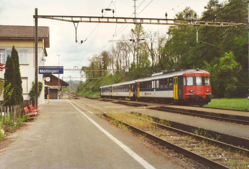Ein Bild aus vergangenen Zeiten: RBe 540 nach Wettingen am 27. April 2003 im alten Bahnhof von Mellingen. Der Personenverkehr auf der Strecke Mägenwil - Wettingen wurde am 12. Dezember 2004 eingestellt.