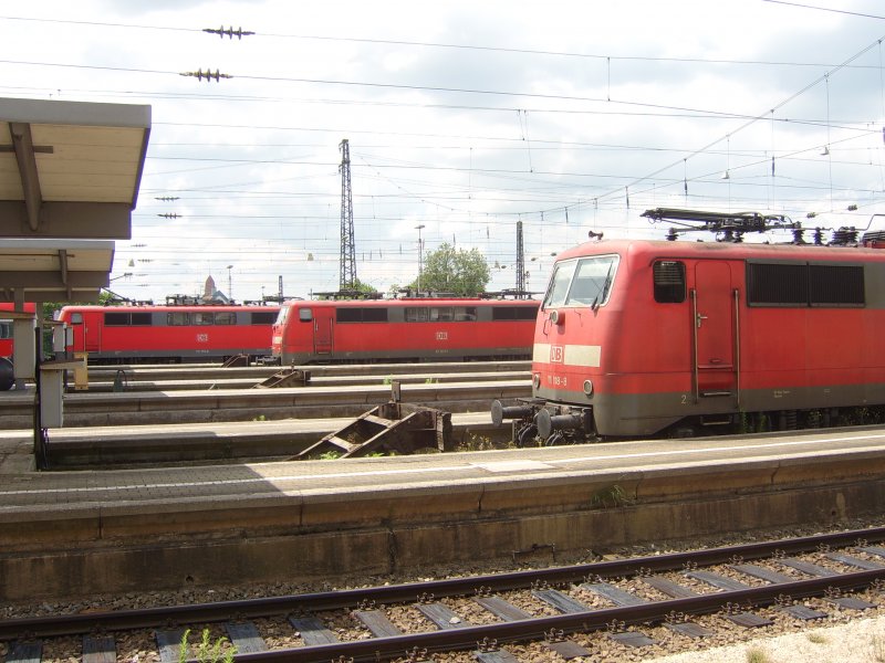 Eine wahre Ansammlung von 111ern in Augsburg HBF. /Vorne 111 018-8 / Mitte 111 031-1 und Hinten 111 175- 6 mit dem RE nach Nürnberg. Leider sind 2 weitere 111er und eine Br 110 nicht mit auf dem Foto .