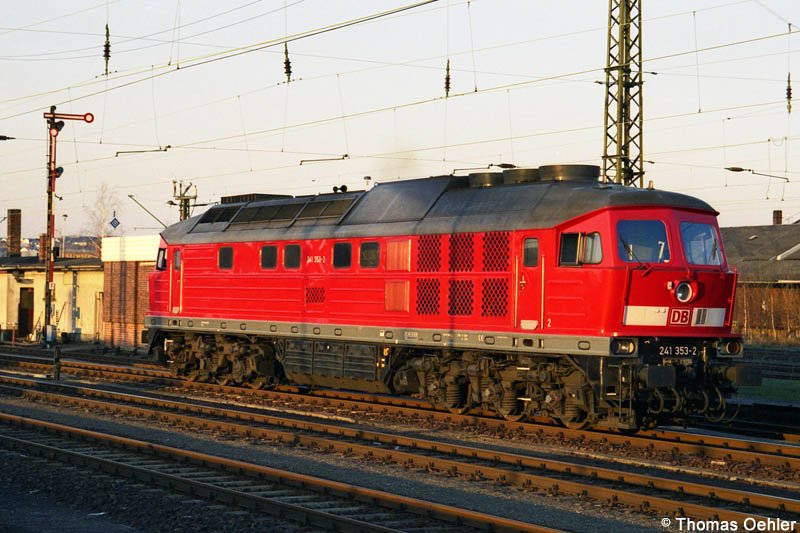 In der Abendsonne im März 2005 präsentiert sich 241 353 in einem sehr fotogenen Zustand in Chemnitz Hbf.