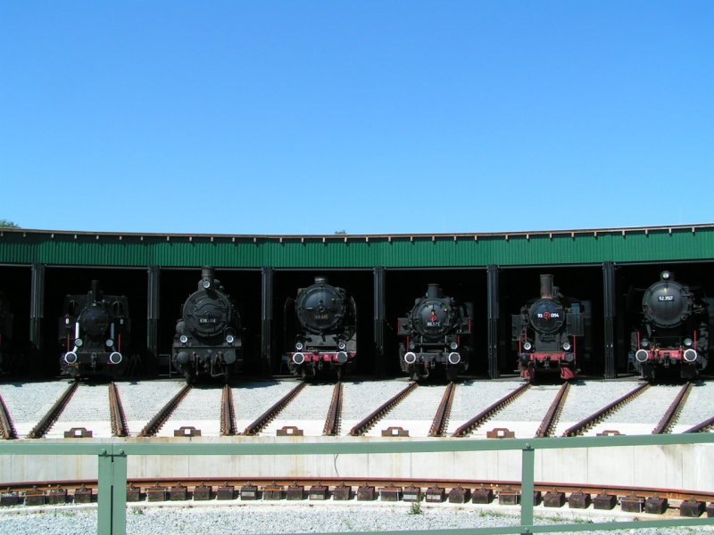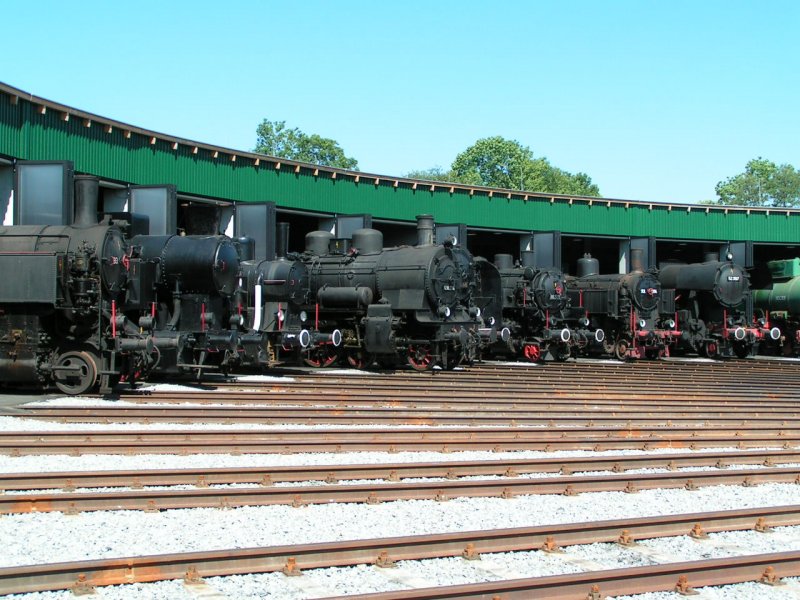 Dampfrösser zur "Lokparade" aufgestellt; Ringlokschuppen Landesaustellung Kohle&Dampf in Ampflwang 2006-07-11