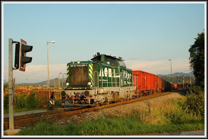 Nachdem die 1100.1 auch ihre letzten Leerwagen des Tages (10.7.2006) am Haken hatte, ging es als G 71382 weiter nach Graz.