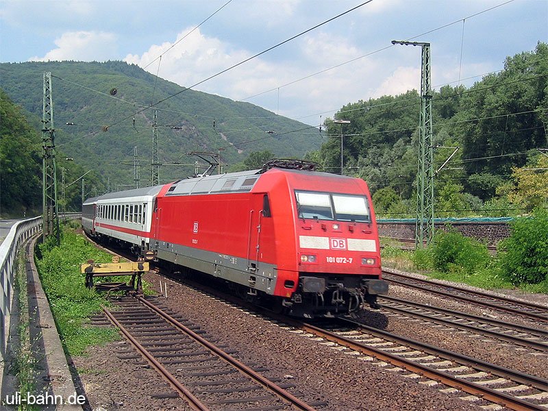 101 072-7 unterwegs mit dem EC 23 auf der KBS 471 am 21.7.2006 vor Bingerbrück.