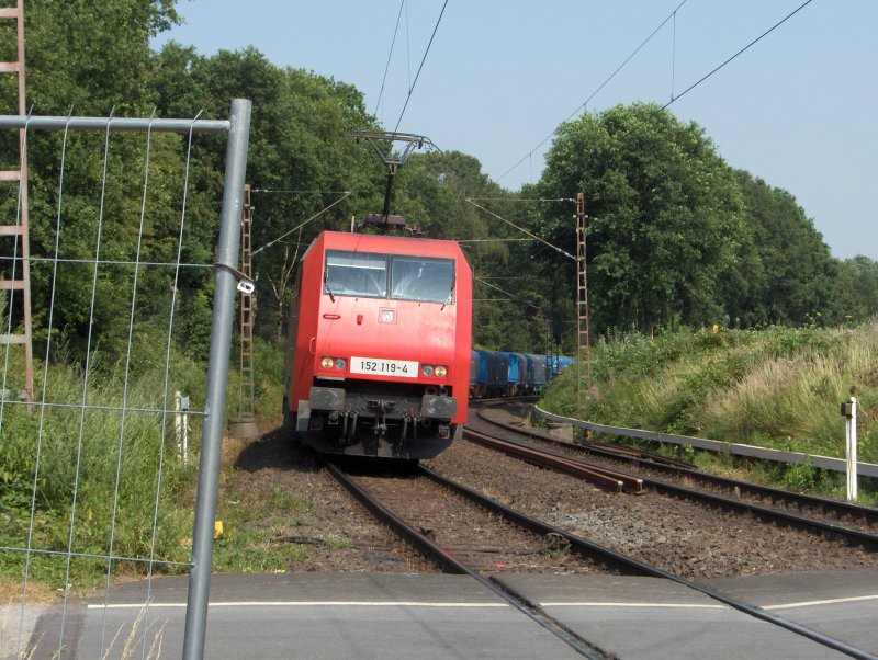 RAG Lok 830 am BÜ Herten Westerholt. Wie man sieht ist dem Lokführer sehr warm! 21.7.06