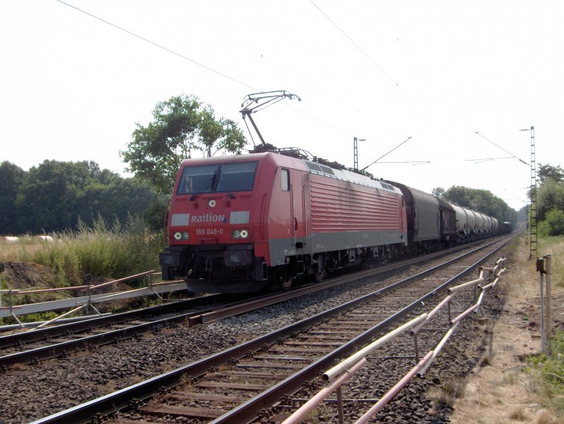 189 059-8 (TEC45503) hat den Hbf Stralsund hinter sich gelassen und fährt weiter zum Seehafen Rostock. (am 20.07.06)
