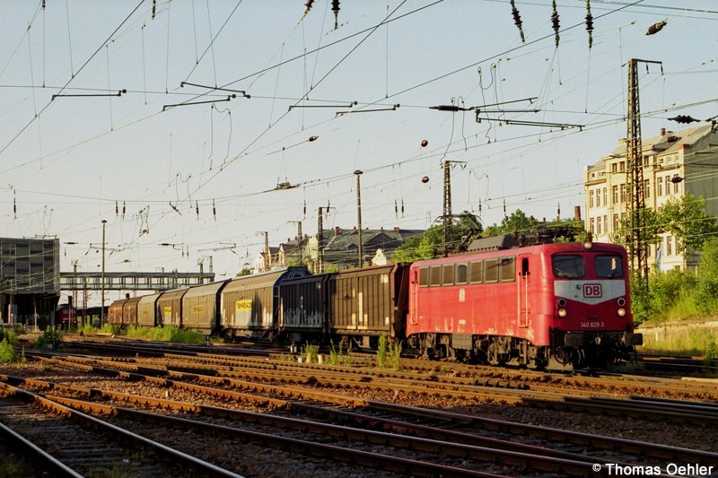 Am Abend des 05.07.06 verläßt 140 829 mit dem Übergabegüterzug nach Zwickau den Chemnitzer Hauptbahnhof.