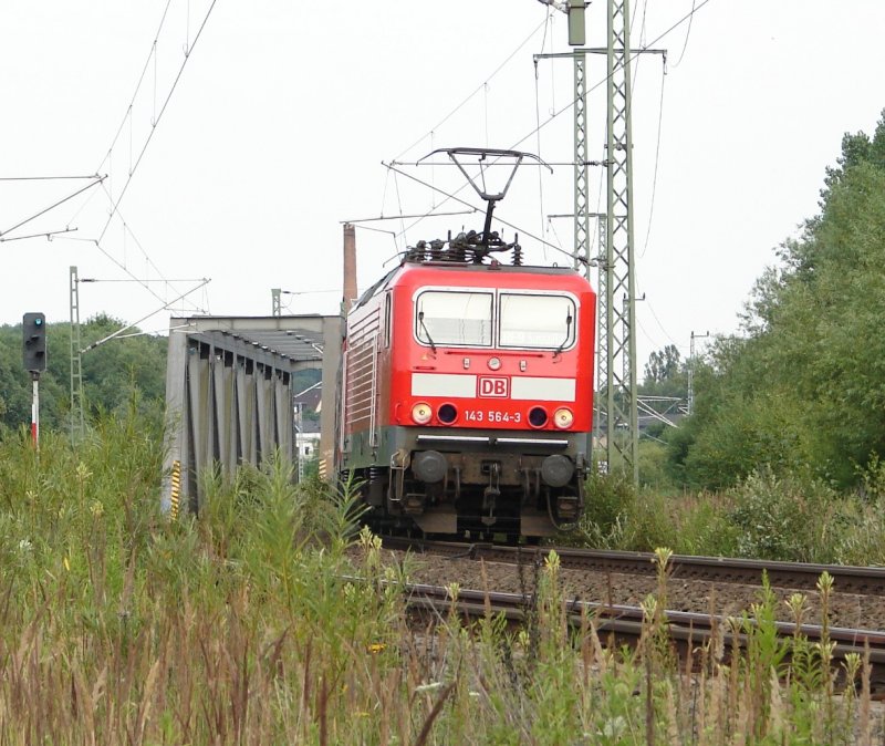 BR 143 564-3 aus Sassnitz kurz vor seinem Endhalt in Rostock Hbf. 21.7.06