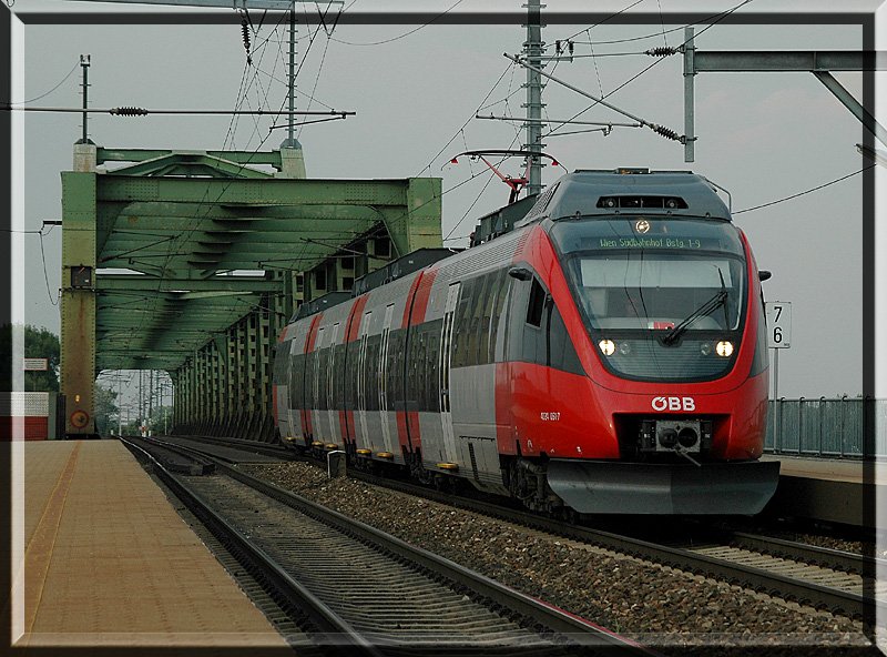 Triebwagen 4024 051 am 21.7.2006 bei der Einfahrt in die Haltestelle Wien-Praterkai als S 80 auf dem Weg nach Wien Süd-Ost.