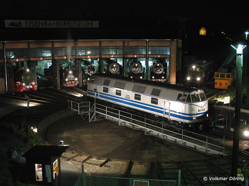 Zur Museums-Sommernacht-Dresden am 08.07.2006 konnte sich auch V240 001 (118 202) auf der Drehscheibe in DD-Altstadt präsentieren.