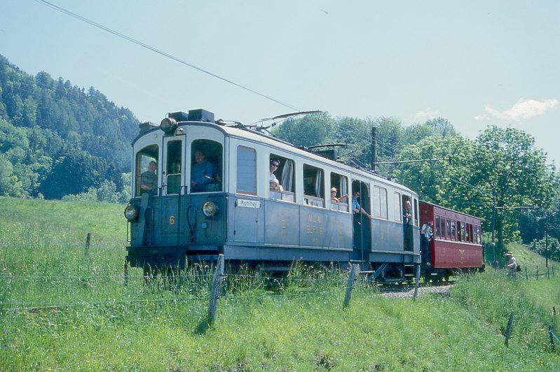 BC Museumsbahn Extrazug 60072 von Chamby nach Blonay am 24.05.1999 bei Cornaux mit Triebwagen exMCM BCFeh 4/4 6 - exNStCM B 7.