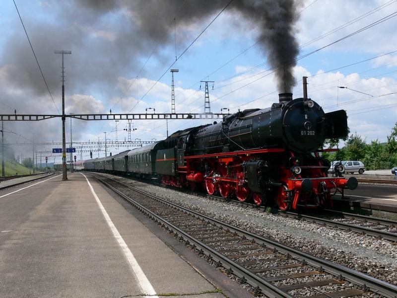 Einfahrt des Sonderzuges der Ulmer Eisenbahnfreunde in STEIN-Säckingen/Aargau am 03.06.2006 mit Lok 01 202. Fahrtziel Chur/GR.