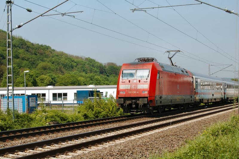 101 139-4 mit IC in Richtung Koblenz. Aufgenommen zwischen Sinzig und Bad Breisig am 10.05.06.