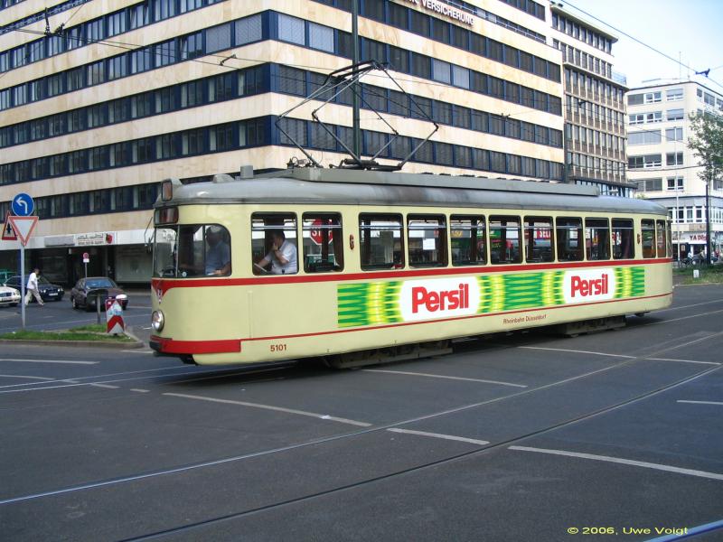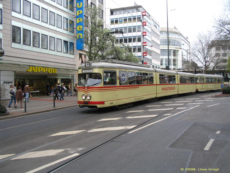 Ein schlichtes Straßenbahnbild . ...aufgenommen bei der Haltestelle Philippstraße in der Kaiserallee, oder ist das schon die Rheinstraße? 06.05.2006 (M)